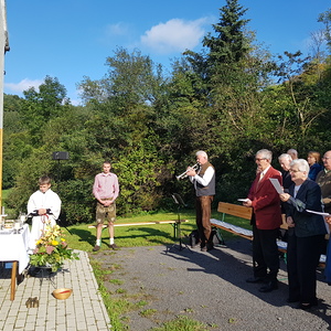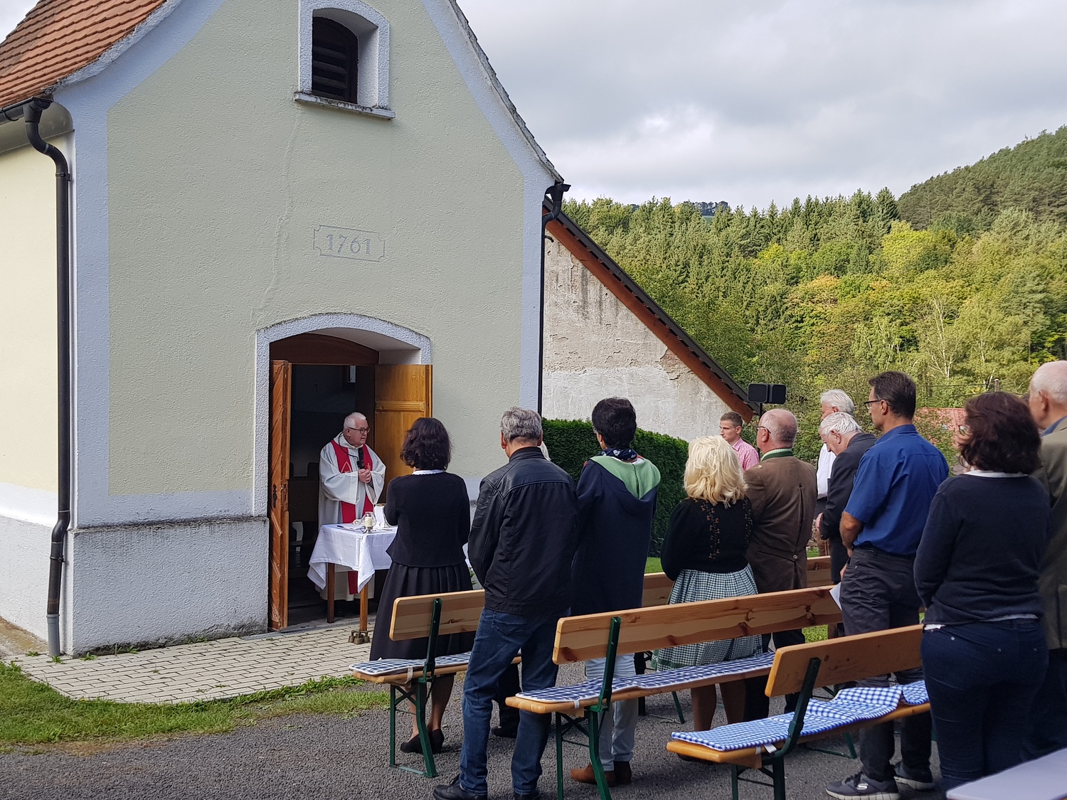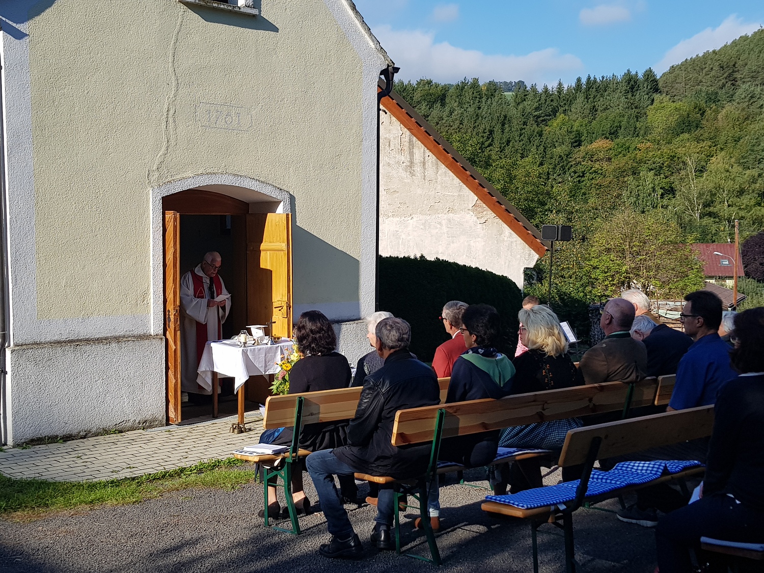 Die Eucharistiefeier wurde zu Ehren des Hl. Matthäus bei der Filialkirche in der Blumau gefeiert. Diese gibt es seit 260 Jahren, über der Tür steht die Jahreszahl 1761 geschrieben. Musikalisch umrahmt wurde die Feier mit Trompetenklängen. Zahlreiche Mitfeiernde durften sich anschließend über eine Agape freuen.