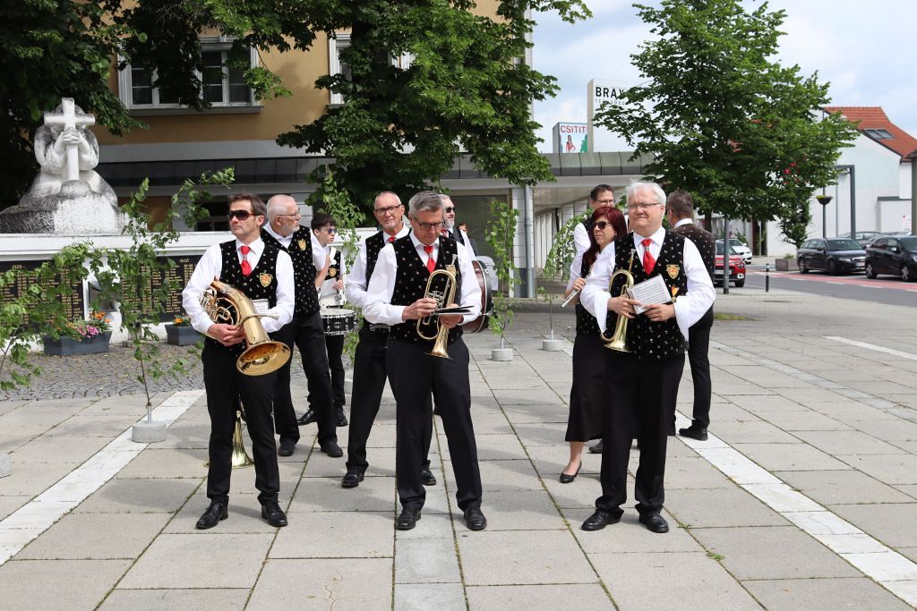 Der geschmackvolle Blumenschmuck, die Musik der Stadtkapelle, das Tragen des Himmels von Vertreter:innen des Gemeinderates, das Blumenstreuen und Singen der Kinder und die ausgewählten Texte und Gebete trugen zur feierlichen Atmosphäre bei. Erstmals wurden auf Initiative von Pfarrgemeinderätin Irene Steiger mit Hilfe von den Ministrant:innen und einigen Frauen und Männern zwei wunderbare Blumenteppiche am Kirchenplatz gestaltet.