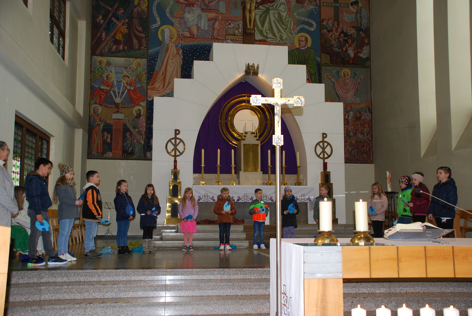 14 Kinder machten sich im Gottesdienst Ende Feber auf den Weg zu Jesus, der Quelle des Lebens. In den Texten erinnerten sie die Gläubigen, welche guten Gaben – etwa Frieden, Freude, Hoffnung - aus der Quelle Gottes sprudeln. Die passenden Lieder begleitete die Musikgruppe Arabesque. Geschwister der Erstkommunionkinder verkündeten mit Pater Deiva in einem Spiel das Evangelium von der Verklärung Jesu am Berg Tabor. Die Eltern lasen Fürbitten, Lesung und ein gemeinsames Segensgebet, das die Kinder auch an die Gottesdienstbesucher verteilten. Bravo Kinder! Hoffentlich werden ihr noch öfter Messen in unserer Kirche mitgestalten