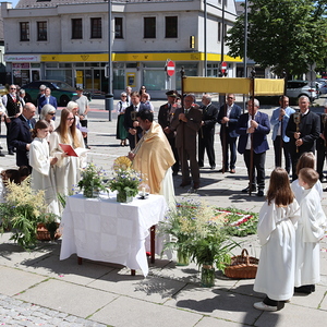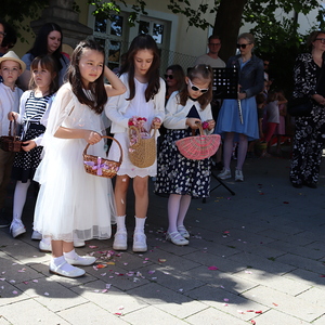 Nach der Messe begann die Prozession mit der konsekrierten Hostie durch Oberpullendorf. Ein Zeichen der Zuwendung Gottes zu Oberpullendorf, unserem Wohn-, Arbeits- und Lebensraum, zur Erde, zur Schöpfung und zur ganzen Wirklichkeit des Lebens. Diese Präsenz Gottes wurde in den Fürbitt- und Segensgebeten besonders zum Ausdruck gebracht.