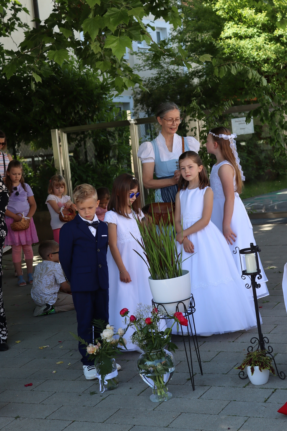 Die Heilige Messe am Fronleichnamstag 2024 wurde als Familienmesse gestaltet. Erstkommunionkinder, Ministrant:innen und alle weiteren kleinen und großen Besucher:innen konnten sich mit Liedern, Tänzen und Gebeten am Gottesdienst aktiv beteiligen.