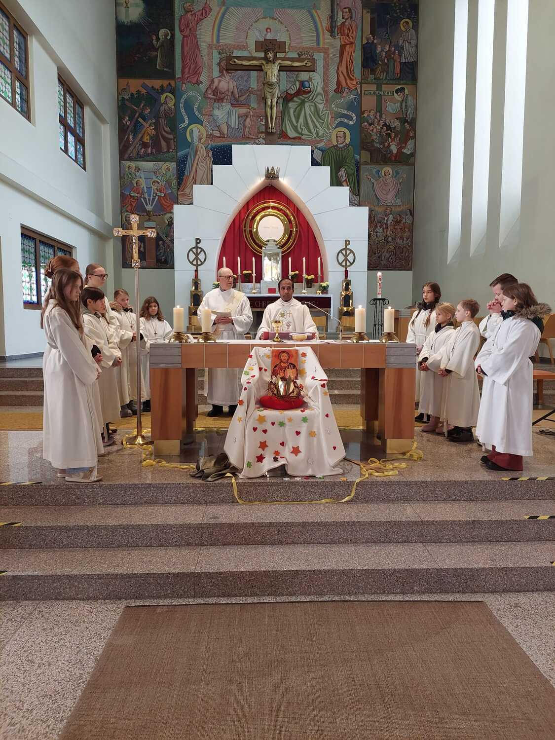 Im Wortgottesdienst wurde auch die Legende vom Heiligen Christophorus, dem Christusträger vorgelesen. P. Deiva betonte bei der Ministranten, dass auch die Ministrant:innen auf ihre Weise Christusträger sind.