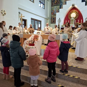 Am Beginn haben die Ministrant:innen Symbole wie ein Herz, einen Dornenkrone oder eine Jesus-Ikone, die an Christus als König erinnern, auf einen Thron vor den Altar gelegt.