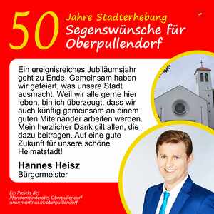Im Jahr 2025 feierte Oberpullendorf 800 Jahre erstmalige Nennung und 50 Jahre Stadterhebung. Zu diesem Jubiläum hat die Pfarre Oberpullendorf die schöne Tradition aufgegriffen, dass zu Jubiläen dem Jubilar gute Wünsche übermittelt werden.
