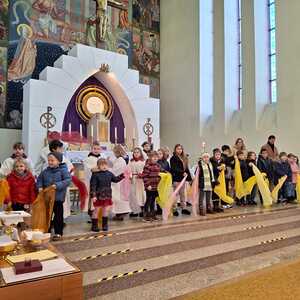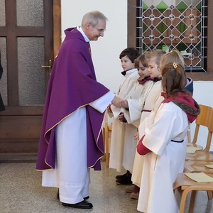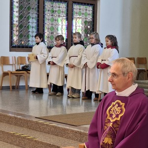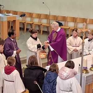 Ein besonderer Moment im Gottesdienst war die Aufnahme von fünf neuen Ministrant:innen in die Ministrantengruppe. Mit ihrer Bereitschaft zum Dienst und den gesegneten Kreuzen – Zeichen der Freundschaft mit Jesus – setzten sie ein starkes Zeichen für Glauben und Gemeinschaft.