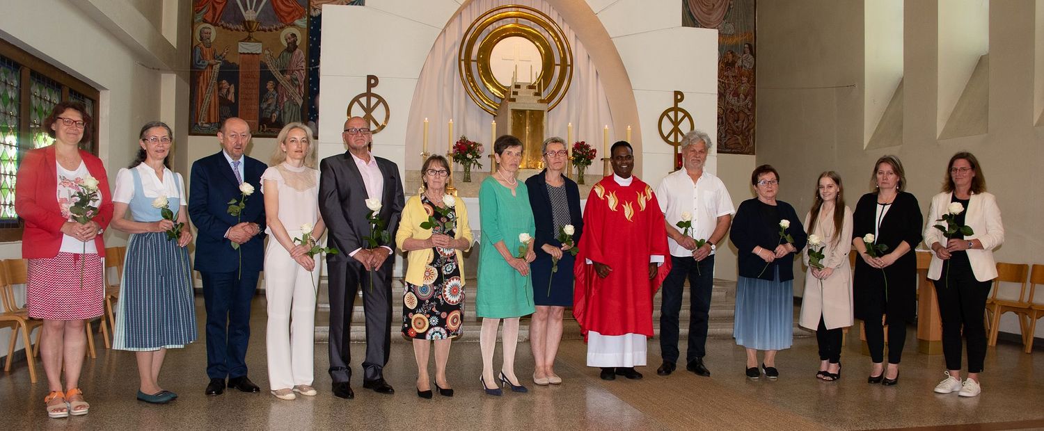 Zu den gewählten und amtlichen Mitgliedern wurden noch vier weitere Personen dazu berufen. Dem neuen Pfarrgemeinderat gehören nun 19 Personen an, die bei der Messfeier am Pfingstsonntag feierlich angelobt wurden: Marion Fasching, Rudolf Ferscha, Renate Gegendorfer, Ladislaus Horvath, Brigitta Jaskulski, Helene Koth, Claudia Krecht, Alois Pichler, Irene Steiger, Kerstin Strodl, Sybille Strodl, Waltraud Wolfram, Sonja Artner, Anni Blagusz, Barbara Buchinger, Ingeborg Schoberwalter, P. Maria Pushpam Pannir Selvam, P. Deiva Sakayaraj Sebasthikkannu und P. Rayappan John Britto Mariasingam