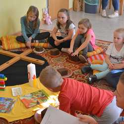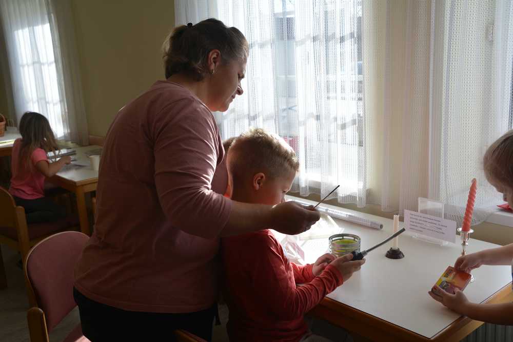 Am Donnerstag, 27. Oktober fand das zweite Treffen der Jahresfestkreisgruppe statt. Dieses Mal durften wir im Pfarrheim Grafenschachen zu Gast sein. Das Thema Allerheiligen konnten die Kinder bei verschiedenen Stationen erleben. So vergruben sie je eine Tulpenzwiebel in die Erde , die scheinbar stirbt. Die Kinder bastelten aber auch Gestecke aus totem Material und erweckten es so zu neuem Leben. Mit verschiedenen Motiven verzierten Mamas mit den Kindern Kerzen, um Licht in die Finsternis zu bringen. Der Höhepunkt für viele war das selbstständige Formen, Backen und Essen eines kleinen Allerheiligenstriezels.