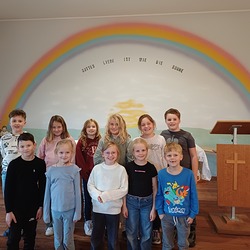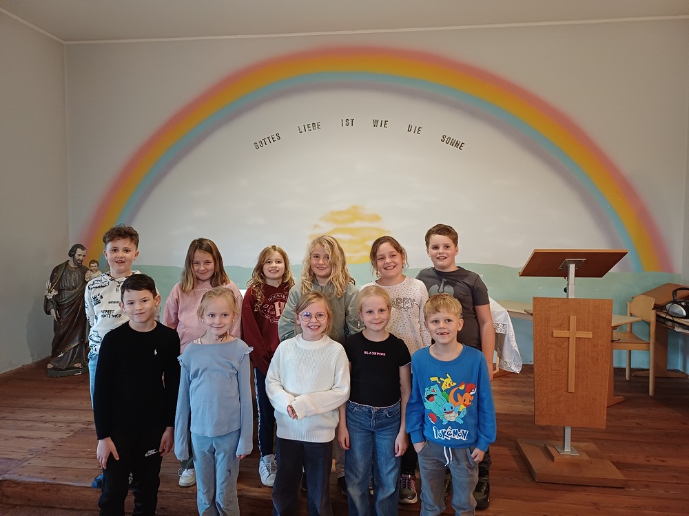 Zwölf Erstkommunionkinder bereiten sich heuer auf die Sakramente der Versöhnung und Eucharistie vor. Am 16. November feierten wir gemeinsam ihre Feier der Annahme, die sie zusammen mit anderen Kindern mit Lesen und Liedern mitgestalteten. Sie stellten sich auch vor und verrieten ihre Hobbys. Am Ende des Gottesdiensten erbaten drei Erstkommunionkinder vom letzten Jahr gemeinsam mit Pfarrer Norbert Gottes Segen für die neuen Erstkommunionkinder.