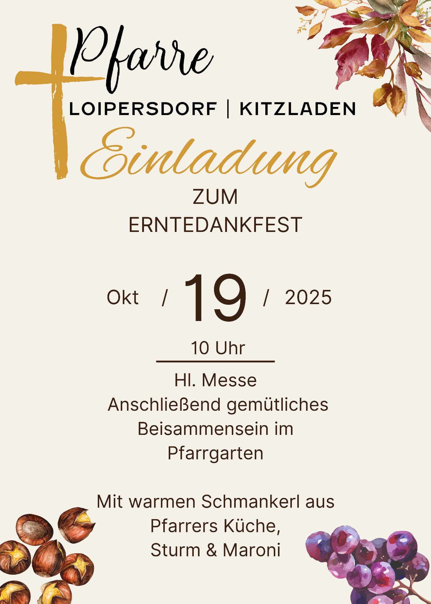 anschließend gemütliches Beisammensein im Pfarrgarten mit Schmankerln aus Pfarrers Küche und Sturm & Maroni