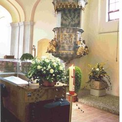 Adam Battyány I. (1609-1659) versuchte den katholischen Glauben auf seinen Besitzungen wieder durchzusetzen. Die Kanonische Visitation 1697 berichtet, dass die Kirche dem Evangelisten Johannes geweiht war. Später wurde sie dann zu Ehren Maria Himmelfahrt konsekriert.