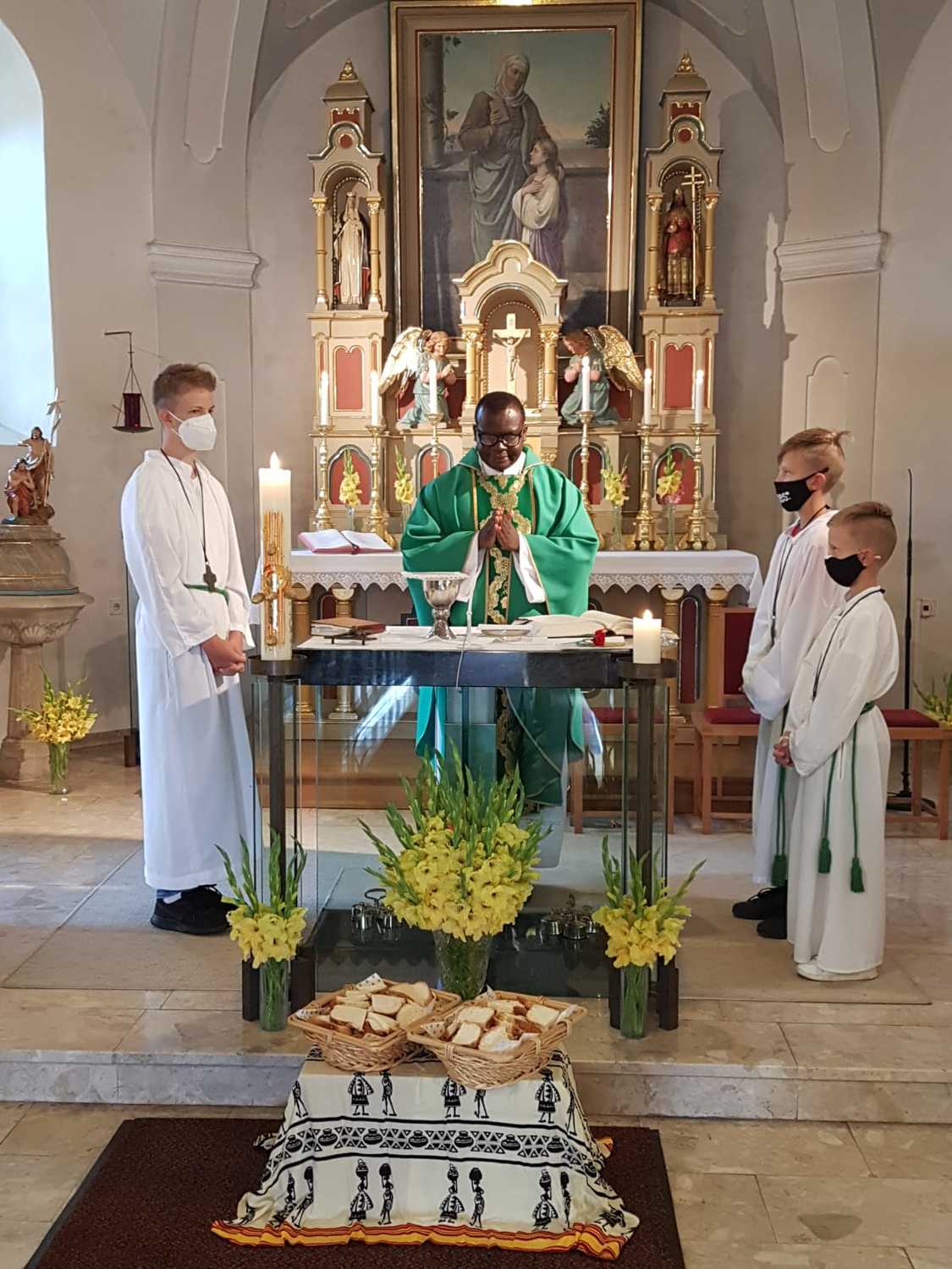 Nach der Hl. Messe gab es kurz Zeit, das gesegnete Brot miteinander zu teilen und zu essen , die Messbesucher persönlich zu begrüßen und mit einigen auch Erinnerungen aufzufrischen und auszutauschen.