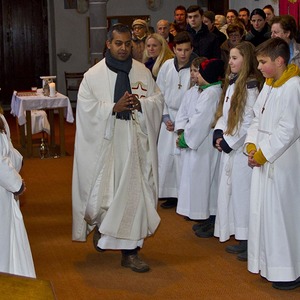 Gleichzeitig wurde die langjährige Ministrantin Jessica verabschiedet. Als Dank für ihren Dienst in der Kirche wurde ihr ein Geschenk als Erinnerung überreicht.
