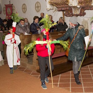 In jener Zeit ging Jesus nach Jerusalem hinauf. Als er in die Nähe von Betfage und Betanien kam, an den Berg, der Ölberg heißt, schickte er zwei seiner Jünger voraus und sagte: Geht in das Dorf, das vor uns liegt. Wenn ihr hineinkommt, werdet ihr dort einen jungen Esel angebunden finden, auf dem noch nie ein Mensch gesessen hat. Bindet ihn los, und bringt ihn her! Und wenn euch jemand fragt: Warum bindet ihr ihn los?, dann antwortet: Der Herr braucht ihn. Die beiden machten sich auf den Weg und fanden alles so, wie er es ihnen gesagt hatte. Als sie den jungen Esel losbanden, sagten die Leute, denen er gehörte: Warum bindet ihr den Esel los? Sie antworteten: Der Herr braucht ihn. Dann führten sie ihn zu Jesus, legten ihre Kleider auf das Tier und halfen Jesus hinauf. Während er dahinritt, breiteten die Jünger ihre Kleider auf der Straße aus. Als er an die Stelle kam, wo der Weg vom Ölberg hinabführt, begannen alle Jünger freudig und mit lauter Stimme Gott zu loben wegen all der Wundertaten, die sie erlebt hatten. Sie riefen: Gesegnet sei der König, der kommt im Namen des Herrn. Im Himmel Friede und Herrlichkeit in der Höhe! Da riefen ihm einige Pharisäer aus der Menge zu: Meister, bring deine Jünger zum Schweigen! Er erwiderte: Ich sage euch: Wenn sie schweigen, werden die Steine schreien.