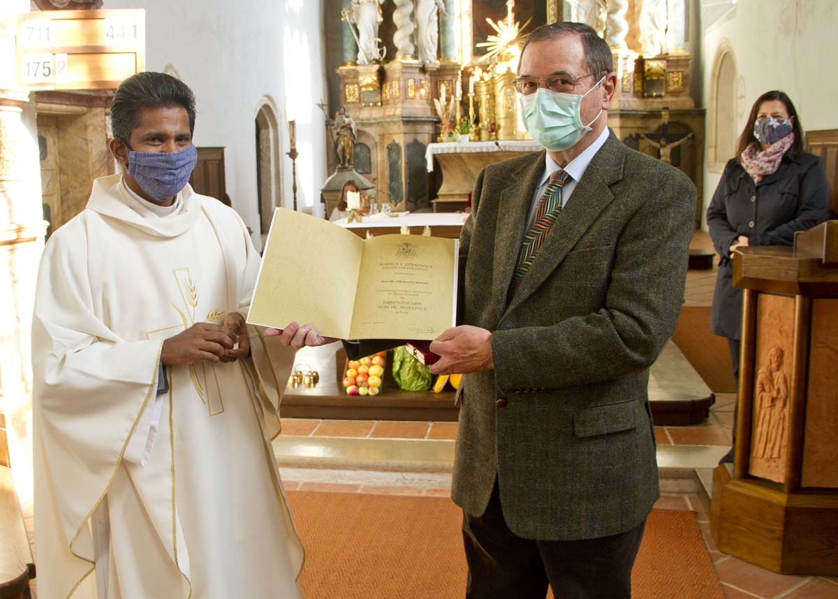 Die Pfarrgemeinde Stadtschlaining bedankt sich für die langjährigen Dienste und den Einsatz innerhalb der Pfarrgemeinde und gratuliert Herrn OSR Paukovits zur Auszeichnung des St. Martinsorden in Gold.