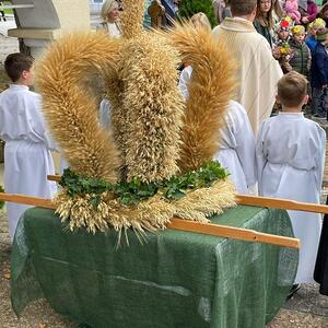 Am Sonntag, 8. Oktober feierte die Pfarre St. Michael ihr Erntedankfest. Traditionell wurde bei der Kapelle Bergstraße begonnen, wo die Kindergartenkinder mit ihren Päagoginnen ein passendes Gedicht und Lied als Einstimmung zur Segnung der Erntekrone und -gaben in die Feier einbrachten. Die Festmesse in der Pfarrkirche wurde von den Erstkommunionkinder des heurigen Schuljahres mitgestaltet. In seiner Predigt verglich unser Herr Pfarrer die Feld- und Gartenfrüchte mit den geistlichen Früchten in unserem Leben und ermutigte dazu, süße und gehaltvolle Früchte hervorzubringen - nicht saure oder verdorbene. Dazu bedürfe es der Kenntnis um geistliche Früchte und um ihre rechte Pflege und Hege.