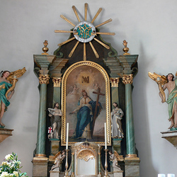 Erbaut 1853. Geweiht dem Heiligen Stephan. Rechteckbau mit eingezogenem, halbrund geschlossenem Chor und vorgebautem dreigeschoßigem Westturm mit Spitzhelm. Zweijochiges Schiff, Platzlgewölbe zwischen stuckverzierten Gurten auf breiten Pilastern. Dreiachsige Empore. Chorjoch durch rundgezogene Kehle vom östlichen Schiffspfeilerpaar zum Triumphbogen mit dem Schiff verbunden. Im Chorjoch quadratisches Platzl, in der Apsis Schalengewölbe. Volksaltar mit zwei barocken Engelfiguren an Apsiswand.