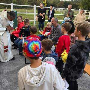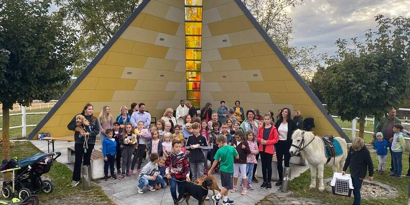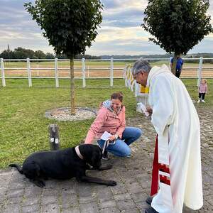 Hunde, Katzen, Hühner, Pferde, ein Pony, eine Gottesanbeterin und jede Menge Kuscheltiere wurden am Welttierschutztag von Pfarrer Thomas Vayalunkal gesegnet.