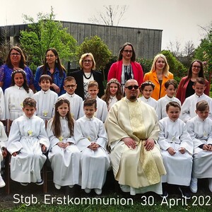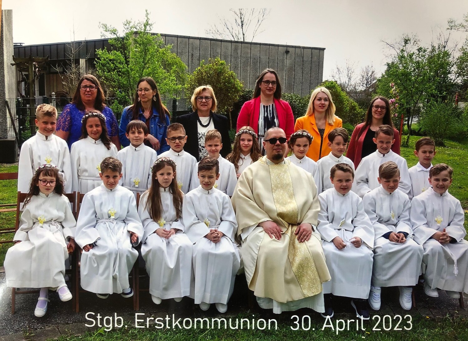 Am 30.04.2023 fand in der Heiligen-Geist-Kirche die feierliche Messe anlässlich der Erstkommunion statt. Dabei erhielten 17 Kinder durch Pfarrer Thorsten Carich das Sakrament der Erstkommunion.