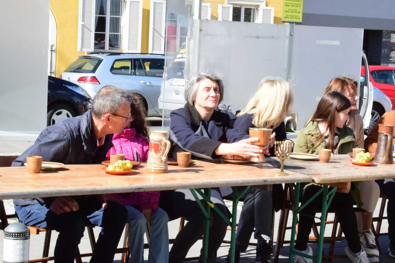 Mit 5 Vorstellungen an diesem Tag, an verschiedenen öffentlichen Orten in Stegersbach, wurde der Gründonnerstag, sprich das Letzte Abendmahl, der Bevölkerung dargeboten und den Menschen visuell wieder in Erinnerung gebracht.