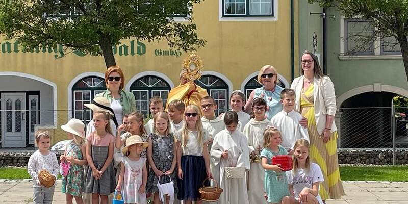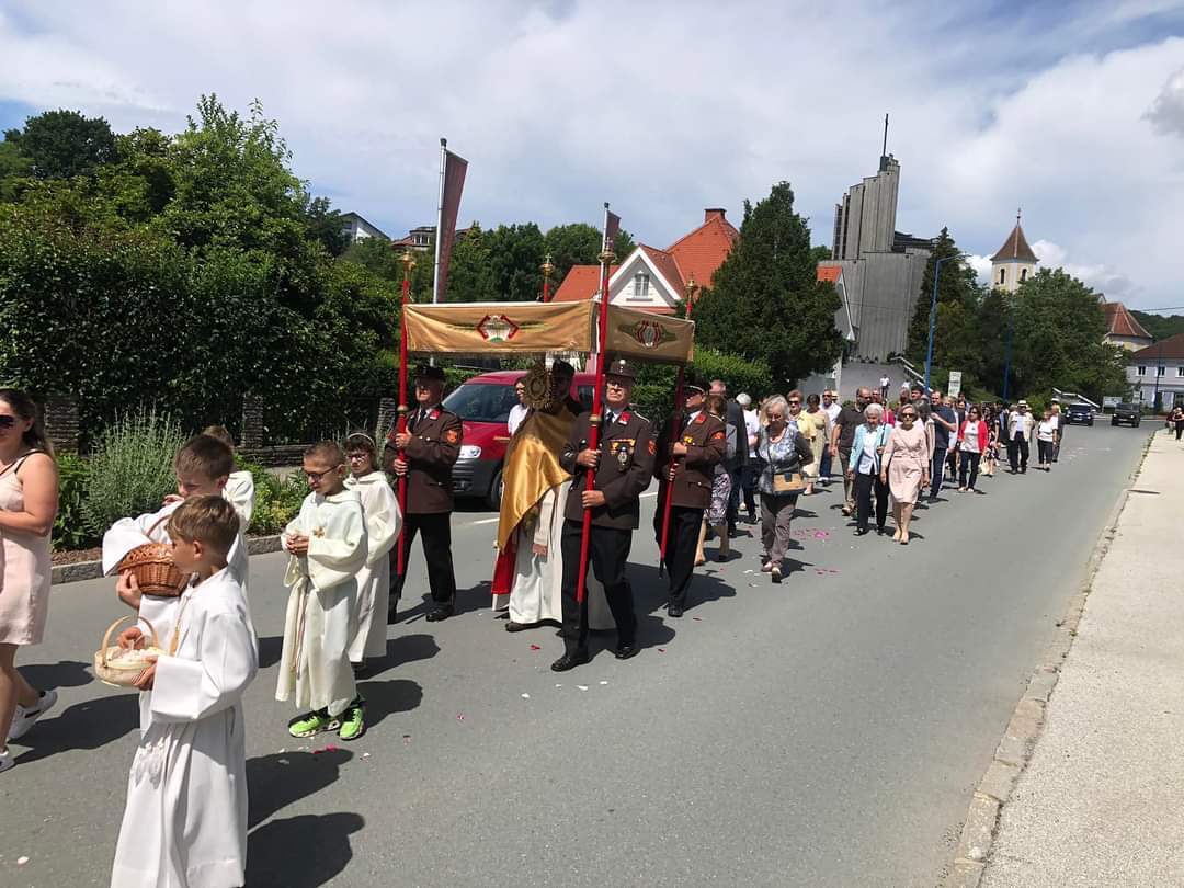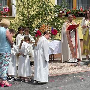 Bei wunderschönen Wetter konnte die Fronleichnamsprozession durchgeführt und das Allerheiligste unter dem Himmel durch die Ortschaft getragen werden.
