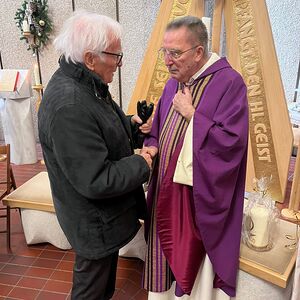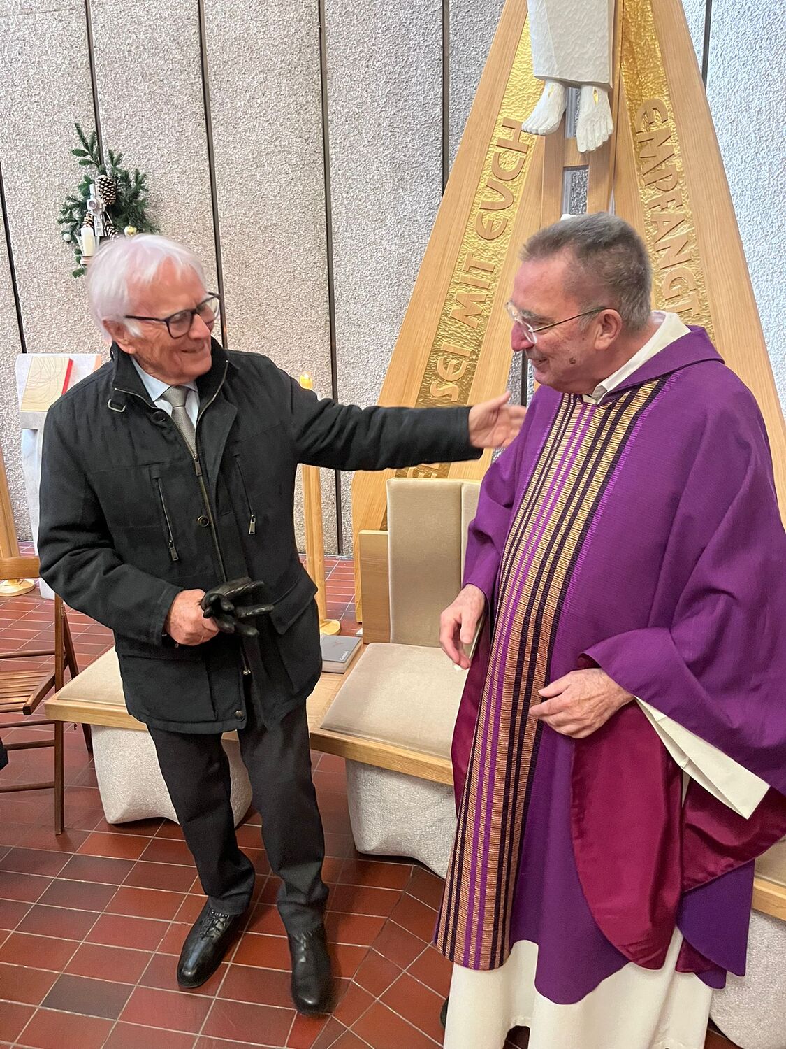 Im Anschluss fand im Pfarrzentrum eine Agape statt, wo die Pfarrgemeinde persönlich dem Jubilar gratulieren konnten.
