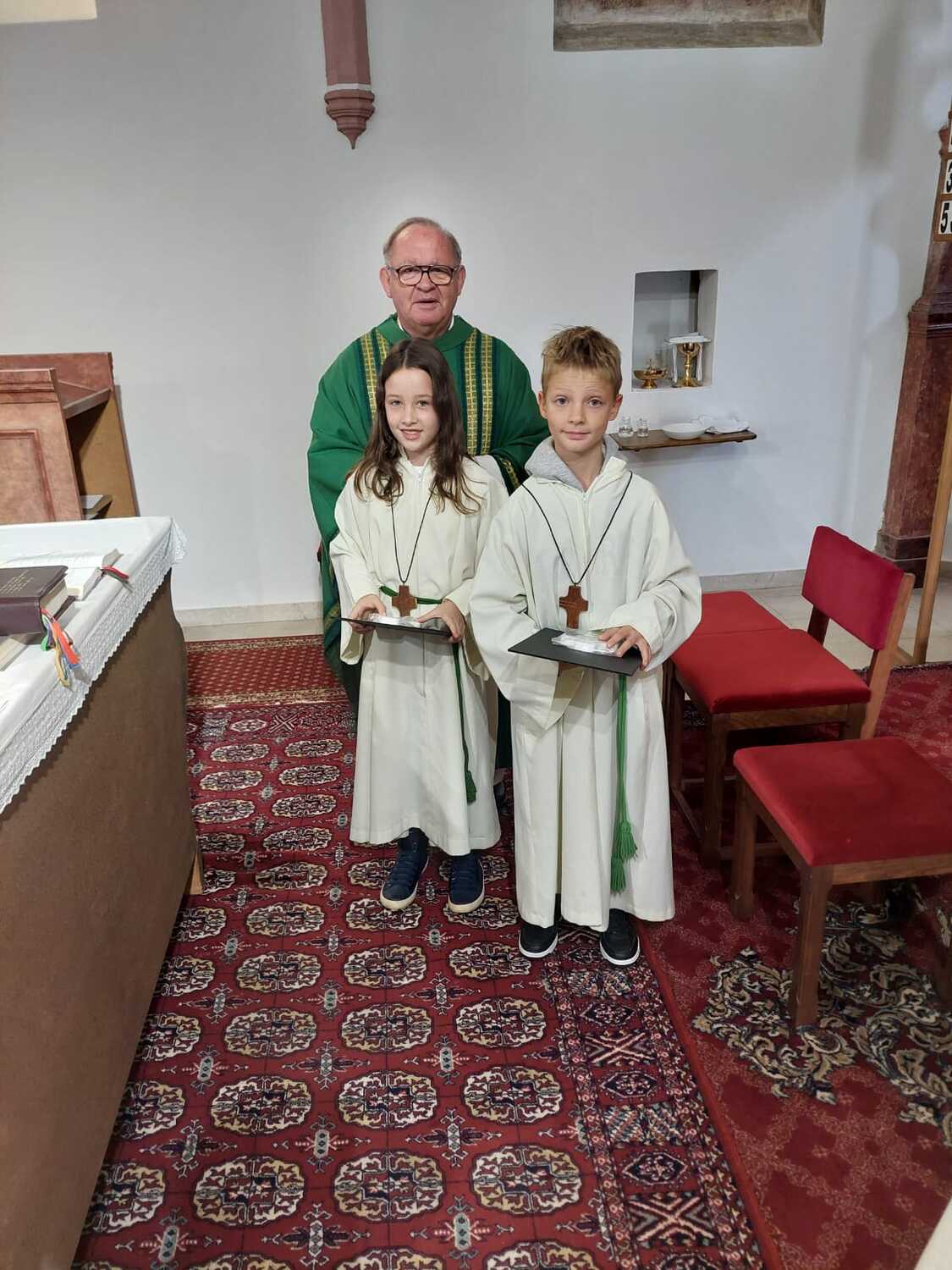 Im Rahmen der Sonntagsmesse am 22.09.2024 stellte Pfarrer Mag. Karl Schlögl die beiden neuen Ministranten, Elena Walter u. Florian Gansfuss, der Pfarrgemeinde vor. Er segnete sie und wünschte alles Gute für den Dienst am Altar.