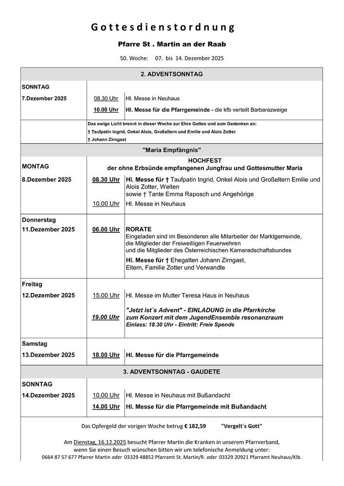 Gottesdienstordnung für diese Woche