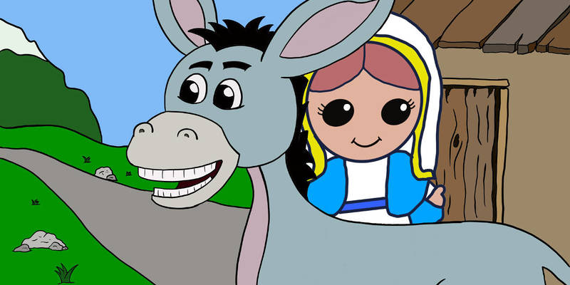 „Ich heiße Maria. Ich bekomme bald ein Baby. Es ist mein erstes Kind und ich bin schon sehr aufgeregt. Der Weg nach Bethlehem ist sehr beschwerlich für mich. Gott sei Dank hat Josef einen Esel organisiert, der mich tragen kann. Immer wieder muss ich über meinen Traum vom Engel Gabriel nachdenken. Er meinte, dass mein Kind etwas ganz Besonderes wäre. Da bin ich aber sehr erschrocken. Wie kann das sein?