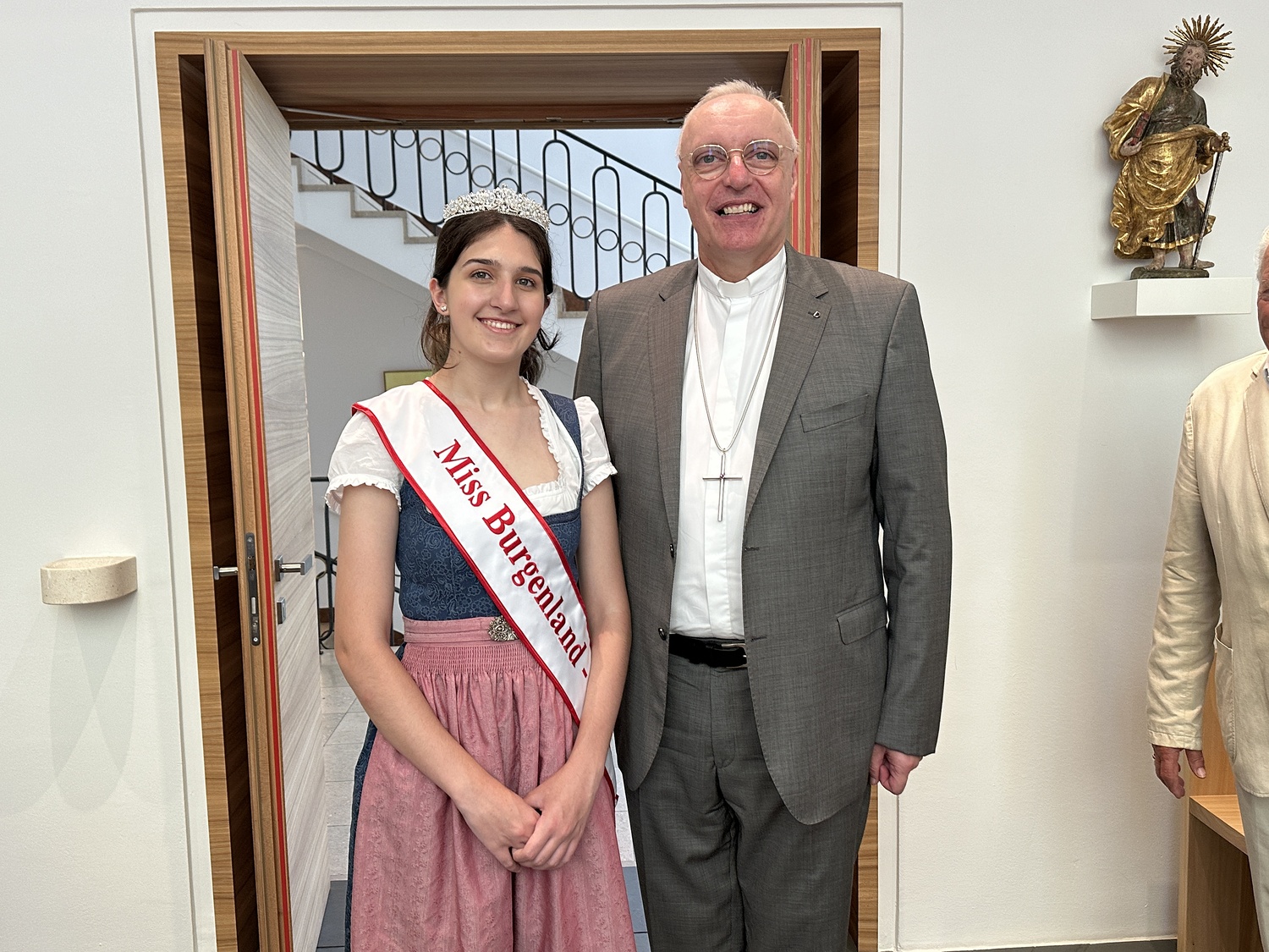 Anfang Juli waren Auslandsburgenländer aus den USA zu Besuch bei Bischof Ägidius. Mit dabei auch Felicia Borselio, die „Miss Burgenland New York“.