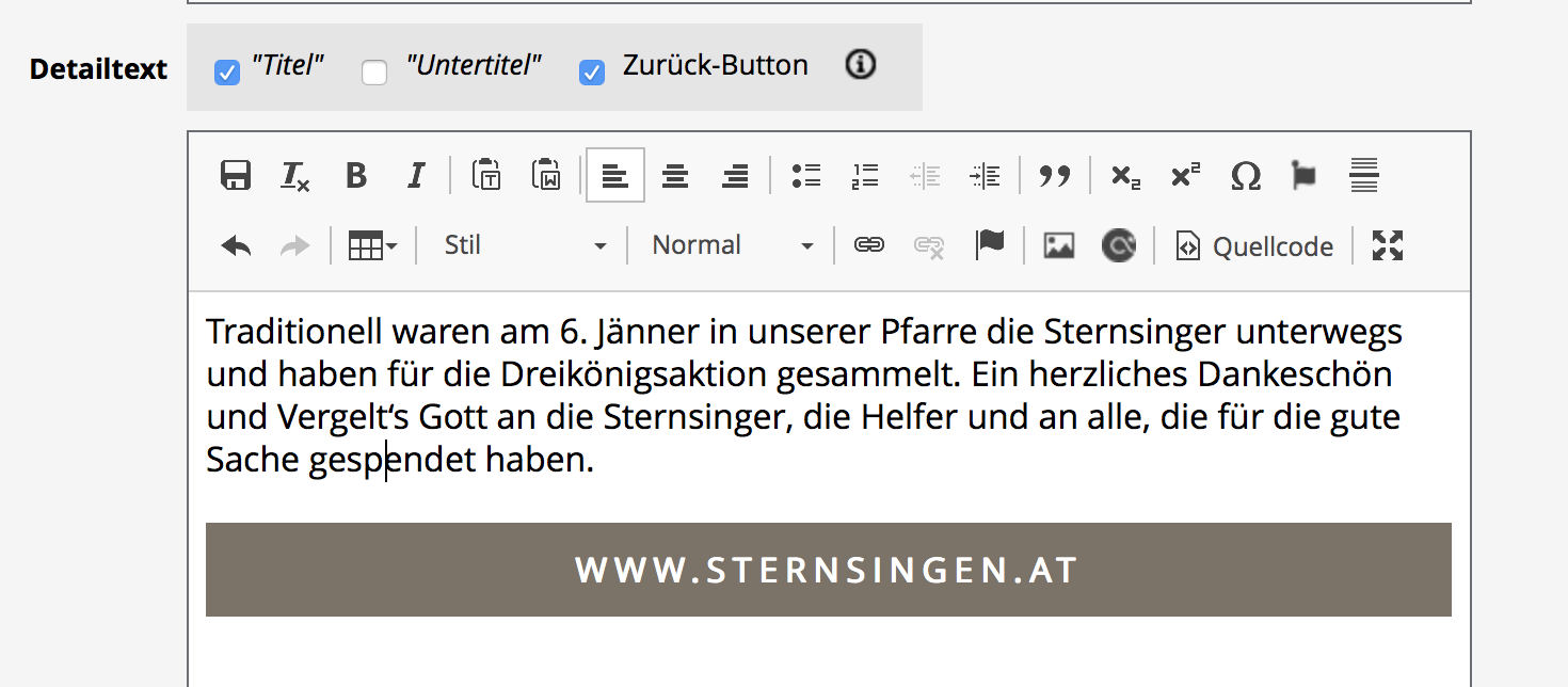 Hinweis: Links können nur im Feld "Detailtext" erstellt werden. Im Listentext werden keine Verlinkungen unterstützt.