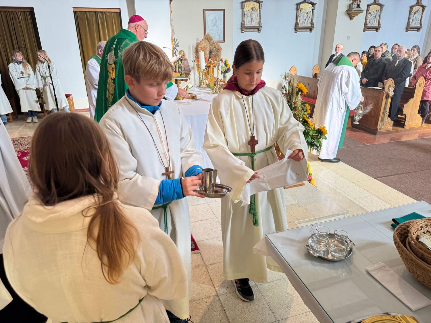 Am Sonntag dem 19. Oktober 2025 fand anlässlich der Eröffnung des neuen Seelsorgeraumes "Maria Weinberg-Unteres Pinkatal" eine gemeinsame Messe mit Diözesanbischof Mag. Dr. Ägidius Zsifkovics, Dechant Mag. Karl Schlögl und Kaplan Zoltan Csiki in Deutsch Schützen statt. Der neue Seelsorgeraum umfasst die Pfarren: Deutsch-Schützen, Sankt Kathrein, Bildein, Eberau, Gaas/Maria Weinberg und Moschendorf. Die Messe wurde vom Chor "Like a Rainbow" musikalisch begleitet. Im Anschluss an die heilige Messe wurden alle Mitfeiernden aus dem Seelsorgeraum zur Agape eingeladen.